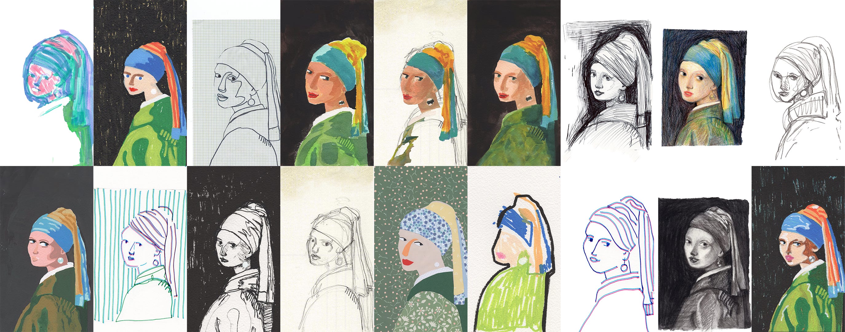 A few weeks back, I decided to spice up my drawing routine by tackling a Dutch classic, Vermeer's iconic "Girl with the Pearl Earring," in not one, not two, but 20 different ways!