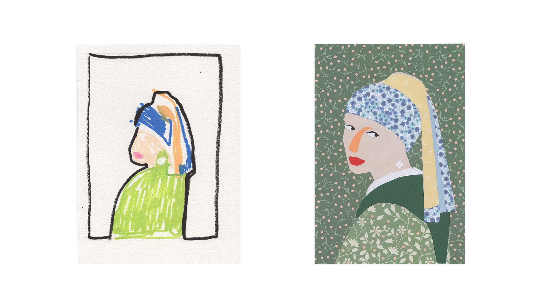In this exercise, you don’t have to overthink; you can play because someone (in this case, Johannes Vermeer) has already done the hard work of creating a gorgeous composition. Now, it’s your turn to experiment with your visual language.